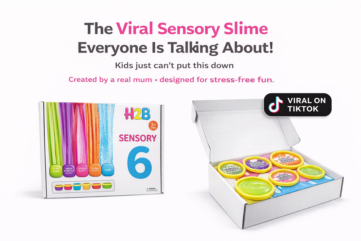 Inside the H2B Sensory 6 Kit you'll find six different slime and putty textures including the viral Neon Green Puff Slime favourite.