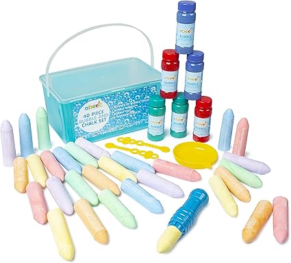 abeec 40 Piece Bubble and Chalk Set – Jumbo Chalk & Bubbles for Outdoor Fun