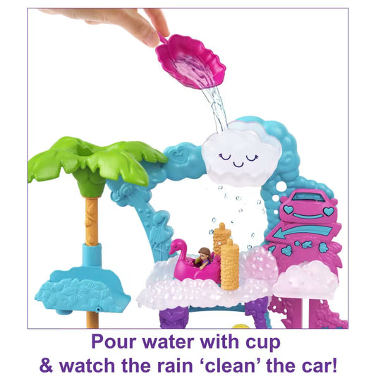Polly Pocket Flamingo Fun Car Wash Playset – Color Change Car, Dolls & Water Play Features