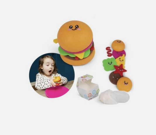 Fidget Burger Toy – Stackable 8-Piece Squishy Sensory Toy for Kids & Adults